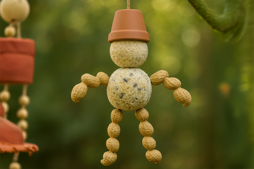 Bastel einen Erdnuss-Hänger für Vögel! Gartenvögel lieben Erdnüsse, weil sie fett- und eiweißreich sind. Mit diesem Vogel-Freund hilfst du ihnen durch den Winter. Häng ihn in einen Baum, einen Busch oder an die Hecke. Für Kinder ab 5 Jahren. Kosten je Kind 4,50 Euro inkl. aller Materialien.